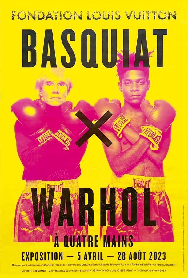 Avec cette affiche (format 118x174 cm), la Fondation Louis Vuitton présente l’exposition "Basquiat x Warhol à quatre mains". Cette mise en scène permet de restituer la scène artistique du Downtown new-yorkais des années 1980.