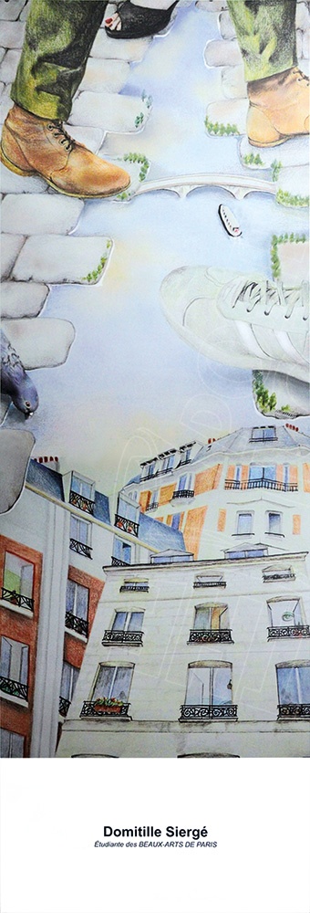 Affiche éditée dans le cadre d’une collaboration entre JCDecaux et les Beaux-Arts de Paris afin de concevoir une oeuvre sur le thème de « Paris et les Parisiens ». Destinée à être affichée sur des colonnes Morris, 4 artistes ont été retenues : Juliette Green, Nastassia Kotava, Domitille Siergé et Gabrielle Simonpietri.