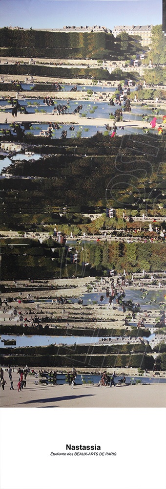 Affiche éditée dans le cadre d’une collaboration entre JCDecaux et les Beaux-Arts de Paris afin de concevoir une oeuvre sur le thème de « Paris et les Parisiens ». Destinée à être affichée sur des colonnes Morris, 4 artistes ont été retenues : Juliette Green, Nastassia Kotava, Domitille Siergé et Gabrielle Simonpietri.