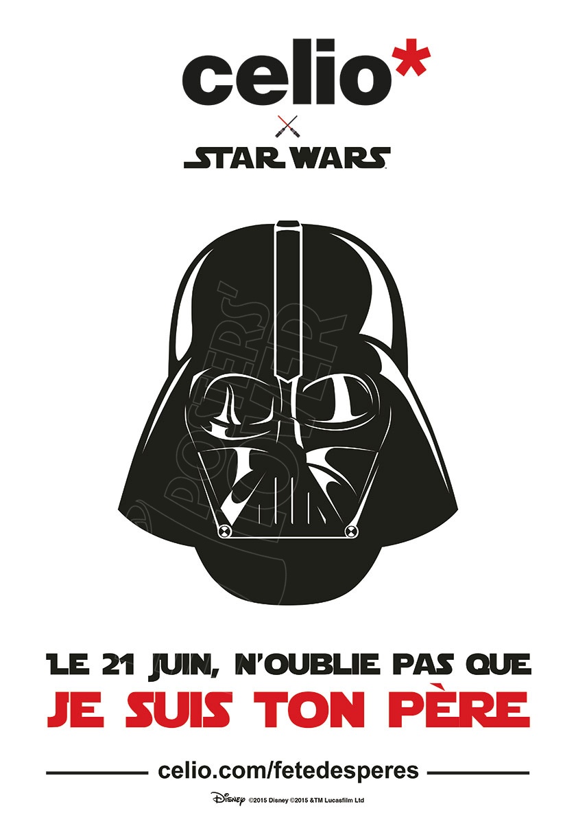 Affiche originale Starwars pour l'enseigne de prêt-porter Celio à l'occasion de la Fête des Pères avec une opération de street marketing réussie et interne en magasins. ... (Description complète plus bas)