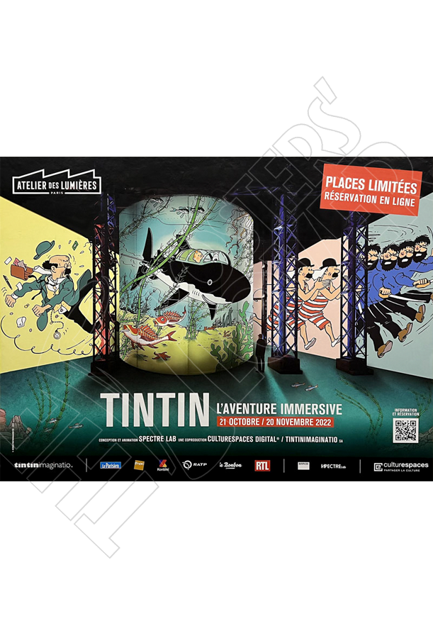 Saperlipopette !!! Admirez cette affiche qui met bien en valeur l'aventure immersive présentée à l‘Atelier des Lumières. Elle reprend tous les codes de l’univers de Tintin, célèbre héros d’Hergé. Très belle affiche pour les fans de Tintin ! ... (Description complète plus bas)