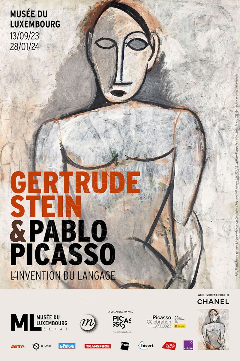 Très belle affiche originale pour la promotion de l'exposition au musée du Luxembourg en 2023.Sous-titrée "L’invention du langage", elle retrace une histoire d’amitié de quarante ans entre deux icônes du XXe siècle, Pablo Picasso et Gertrude Stein. ... (Description complète plus bas)