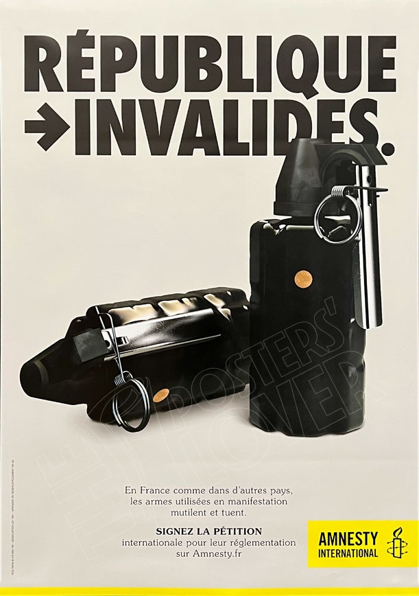 "République --> Invalides", peut-on lire sur ce visuel choc d'août 2023 pour une campagne d'affichage d'Amnesty international.