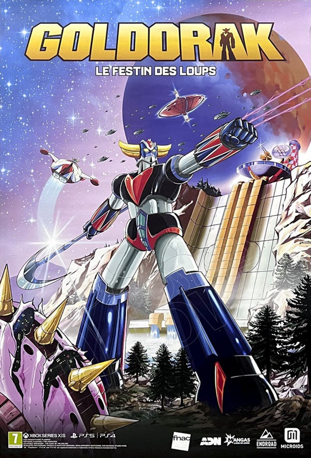 Affiche éditée pour la sortie du premier Goldorak en jeu vidéo, la cultissime série animée Goldorak a marqué plusieurs générations et des millions de personnes à travers le monde se rappellent encore de ses métamorphoses et de ses fulguropoings.