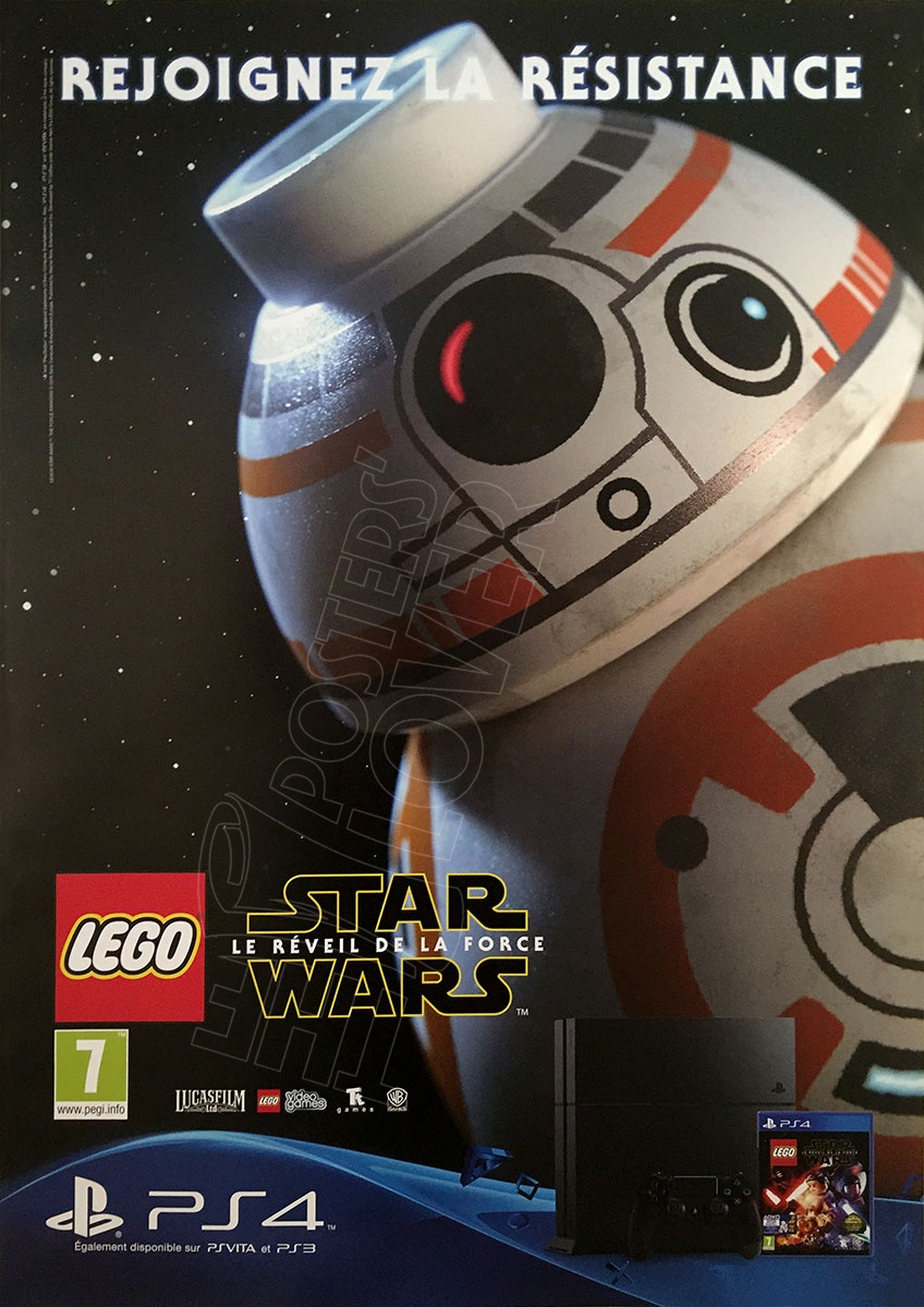 Affiche original LEGO Star Wars "Le Réveil de la Force" sur PS4, visuel "BB8"