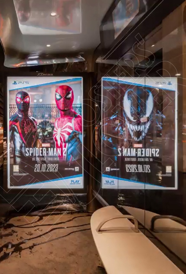 Pour le retour de Peter Parker et Miles Morales pour une nouvelle aventure passionnante sur PlayStation PS5 dans Marvel’s Spider-Man 2, JCDecaux a affiché une superbe campagne événementielle INNOVATE qui au moyen de la technologie "lenticulaire" permet de révéler l'ennemi Venom.