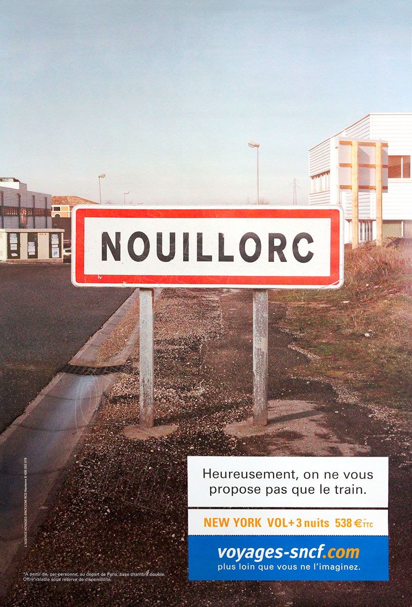Très belle campagne d’affichage 2005 de l’agence DDB Paris et la SNCF qui ont fait preuve d’une imagination débordante, en détournant ainsi une quinzaine de «hauts-lieux» et mettant en scène des lieux imaginaires de bourgades françaises homophones de célèbres destinations internationales : « Nouillorc », « Losse-en-Gelaisse », « St-Gapour », « Quancoune », « Pétoches », « Gastreau-En-Thérite » ou encore « Dèche ».
